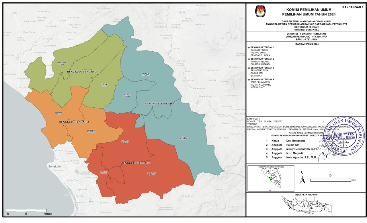 Pengumuman Rancangan Penataan Daerah Pemilihan dan Alokasi Kursi Anggota Dewan Perwakilan Rakyat Daerah Kabupaten Bengkulu Tengah dalam Pemilihan Umum Tahun 2024.