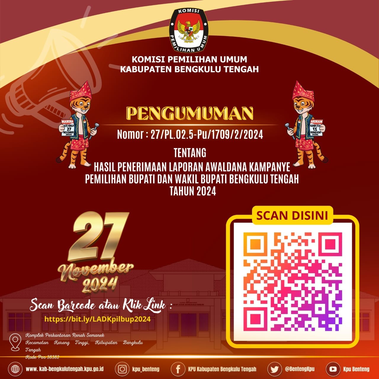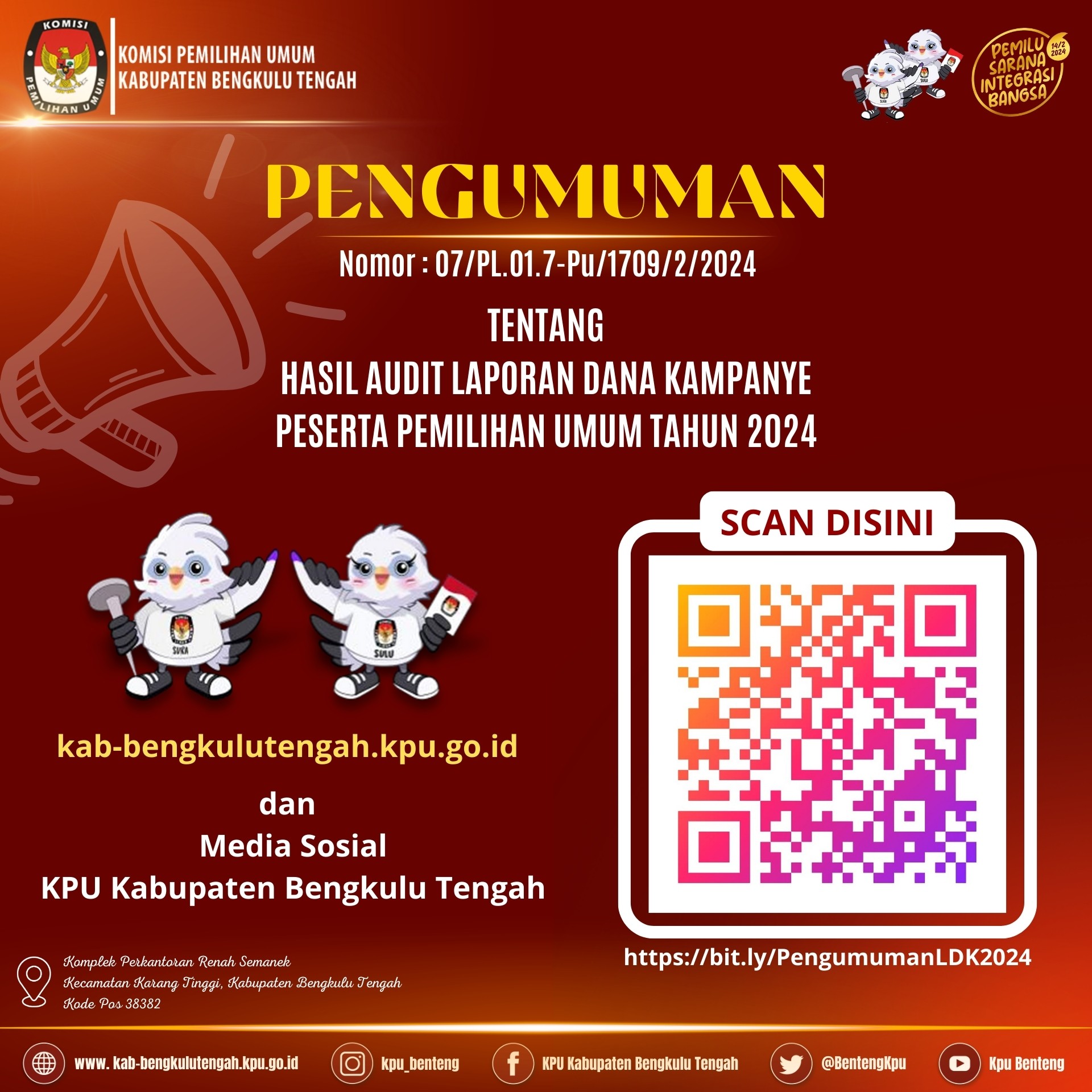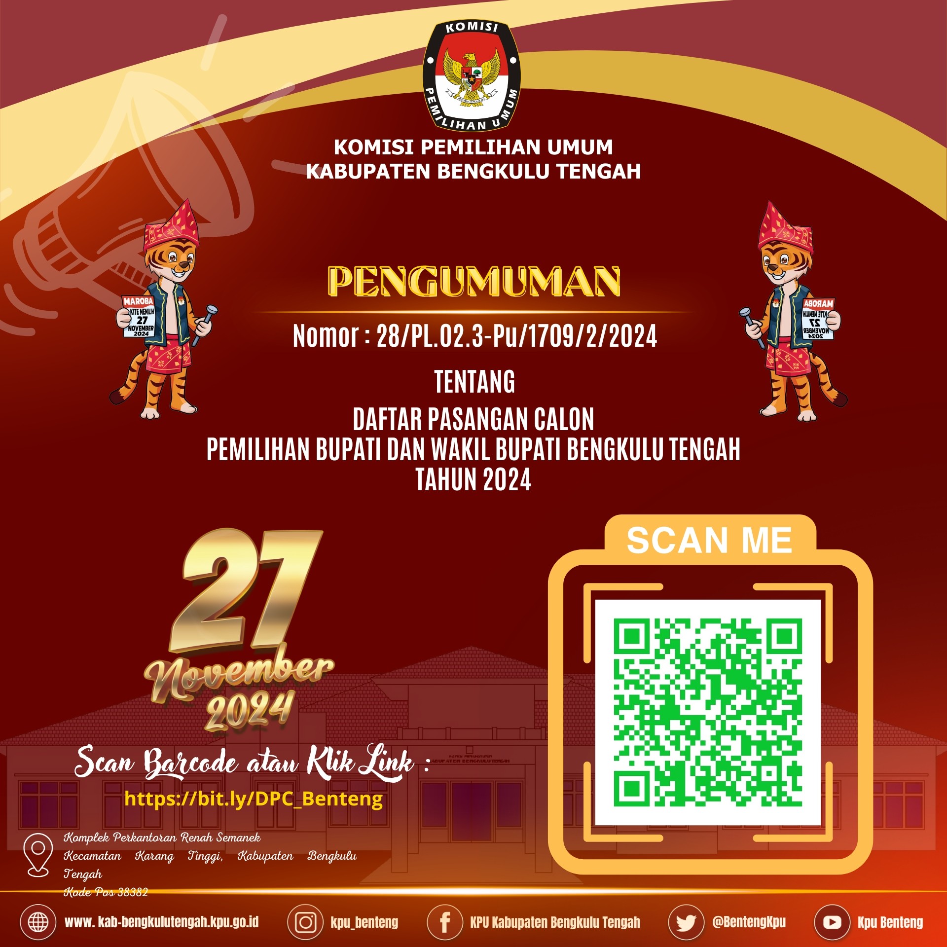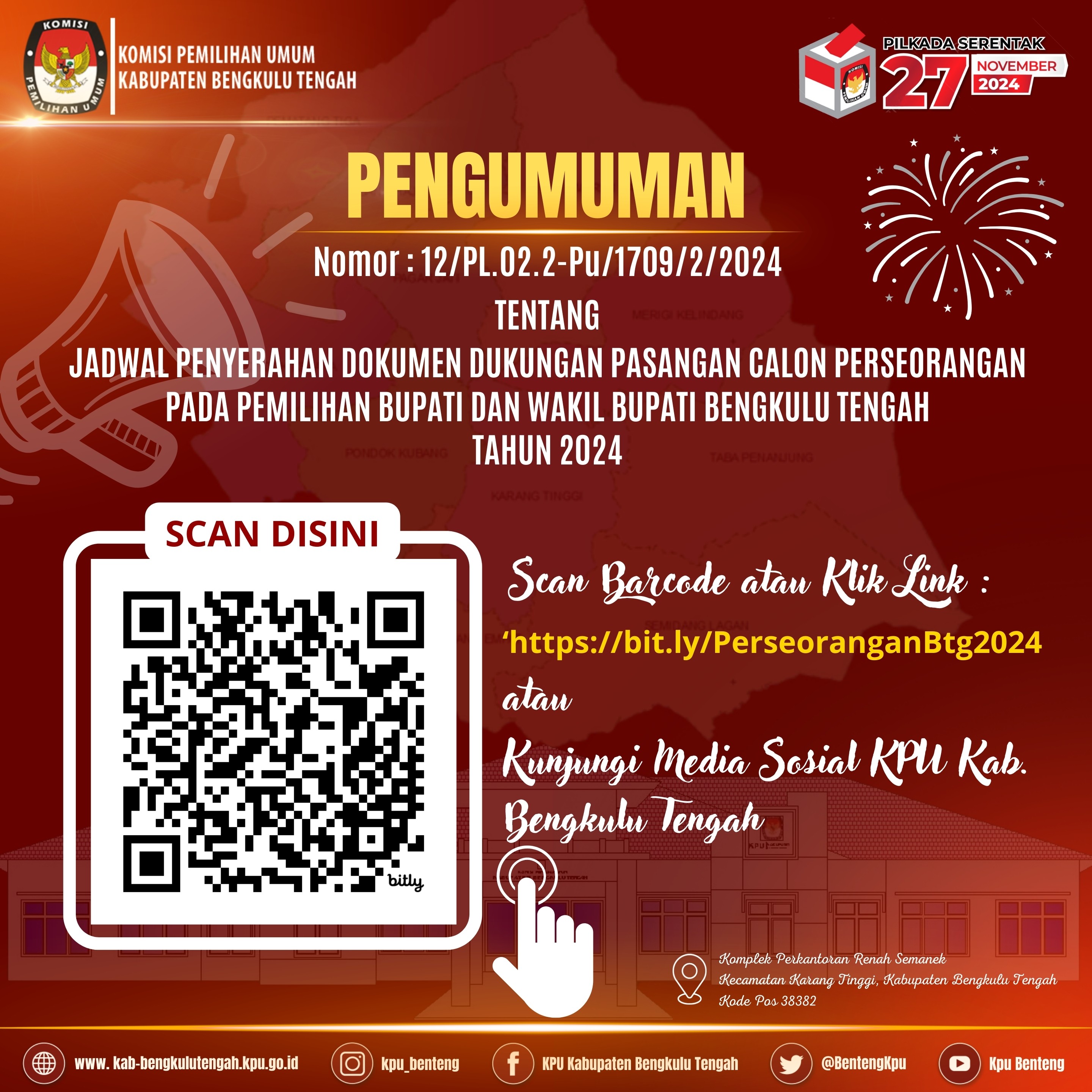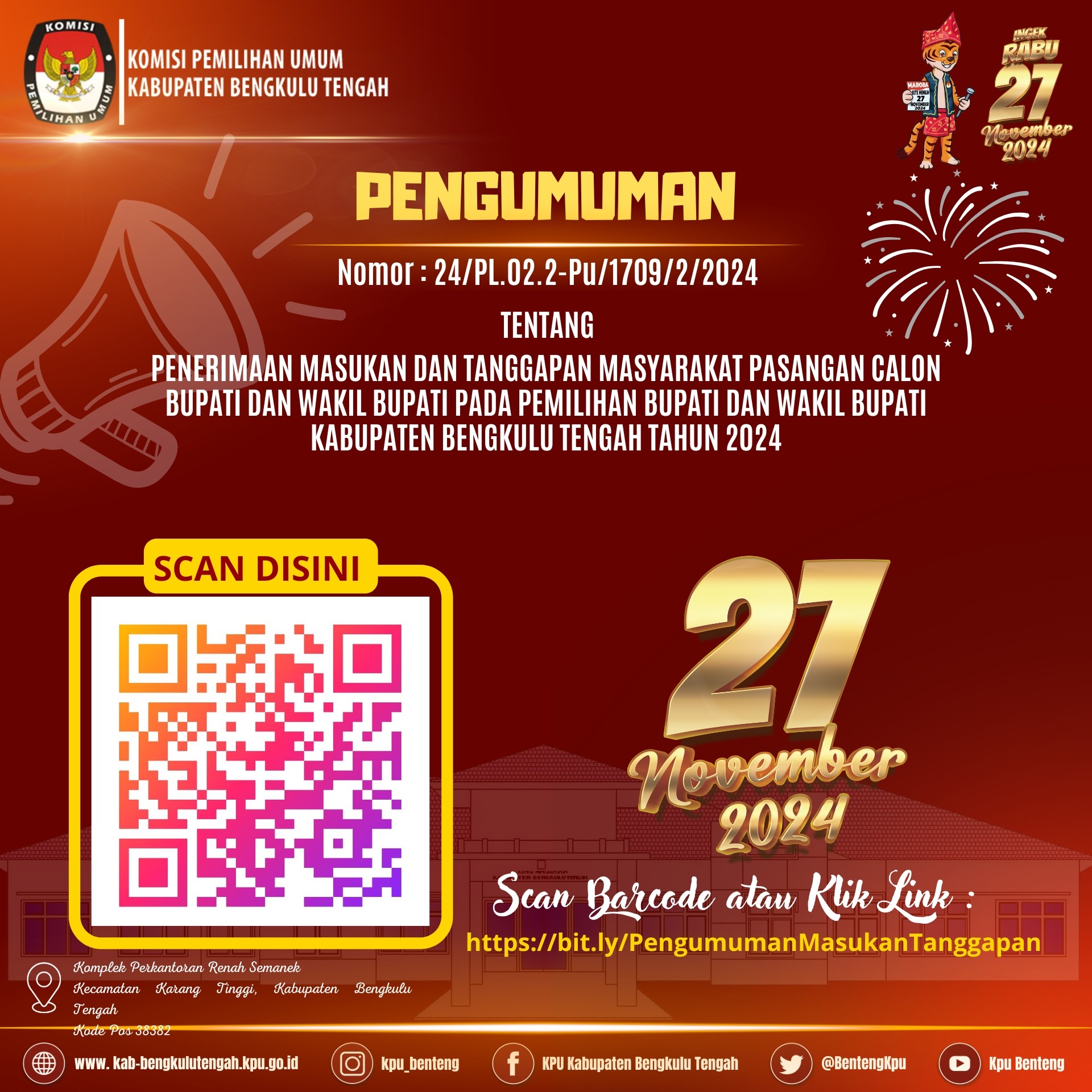 Pengumuman KPU Kab. Bengkulu Tengah Nomor 24/PL.02.2-Pu/1709/2/2024