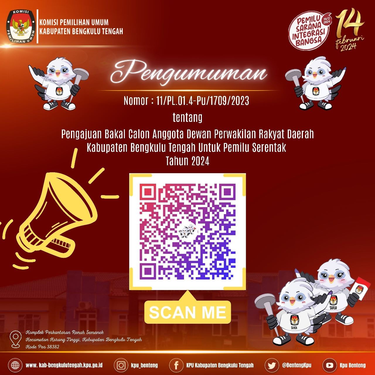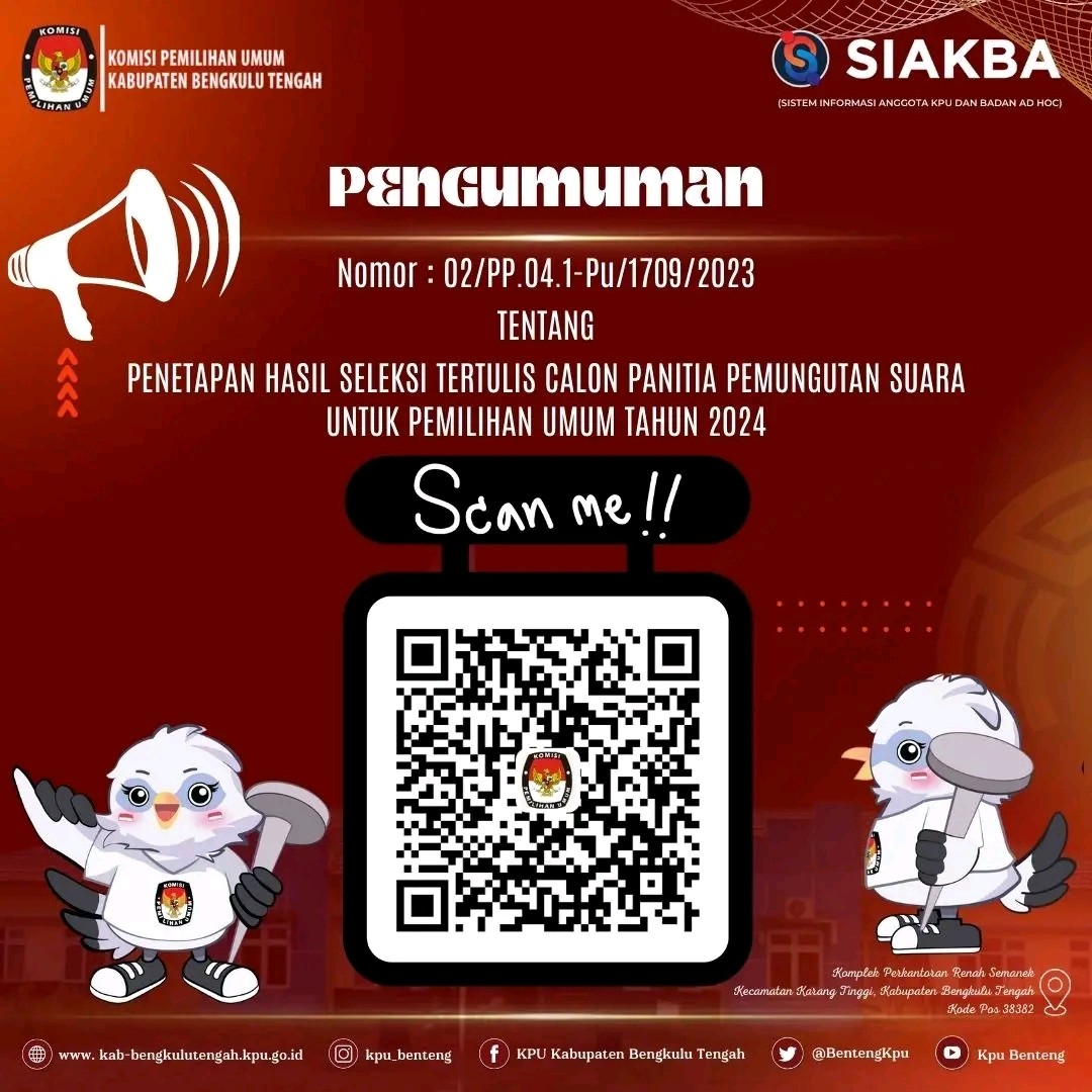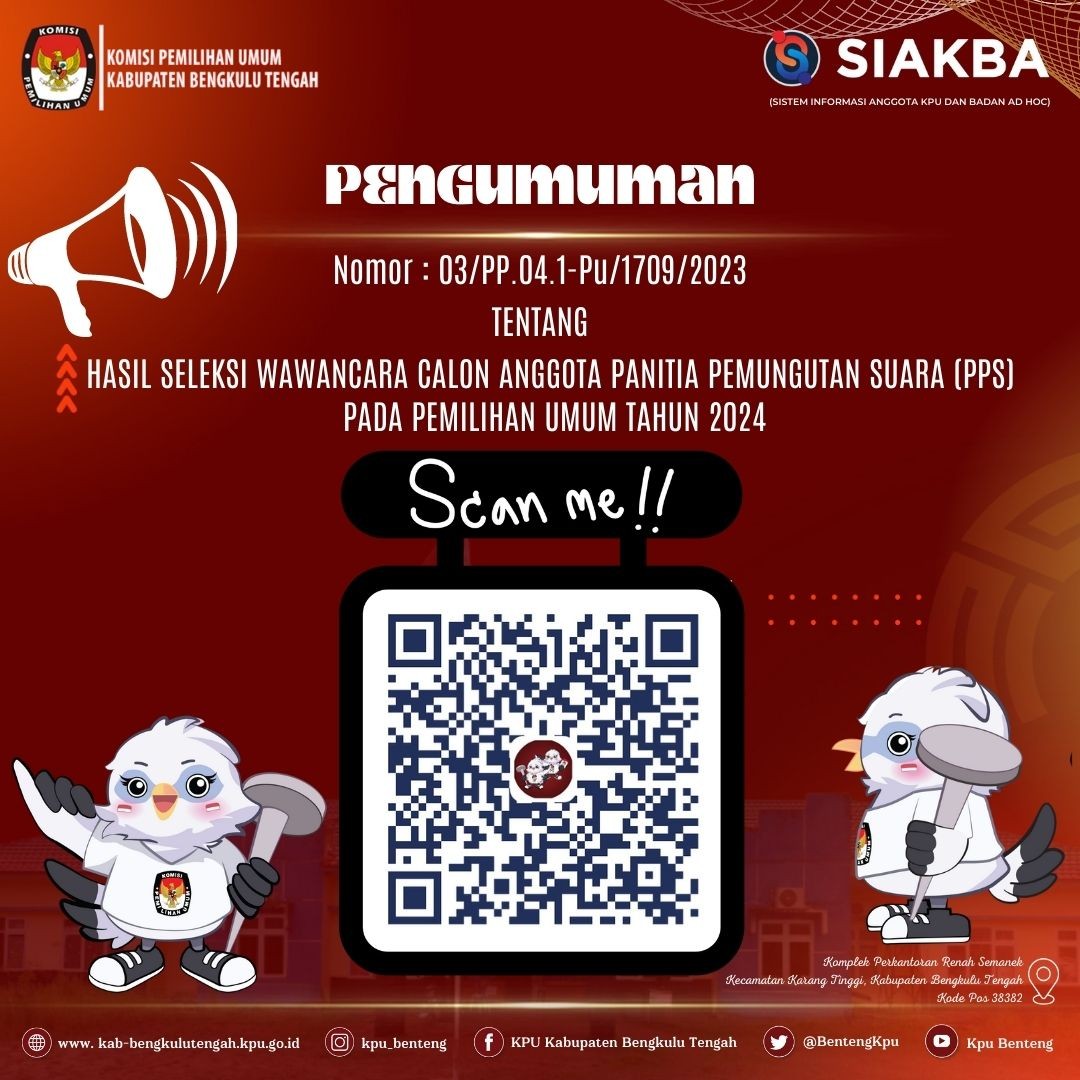 3. Informasi lebih lanjut dapat menghubungi helpdesk pencalonan KPU Kabupaten Bengkulu Tengah
